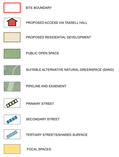 Vehicle access will be provided from a new priority T-junction with Tassell Hall.