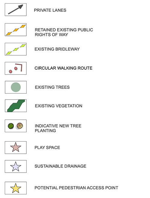 There are a number of Public Rights of Way (PRoW) crossing the site and these will be protected and enhanced in green corridors.